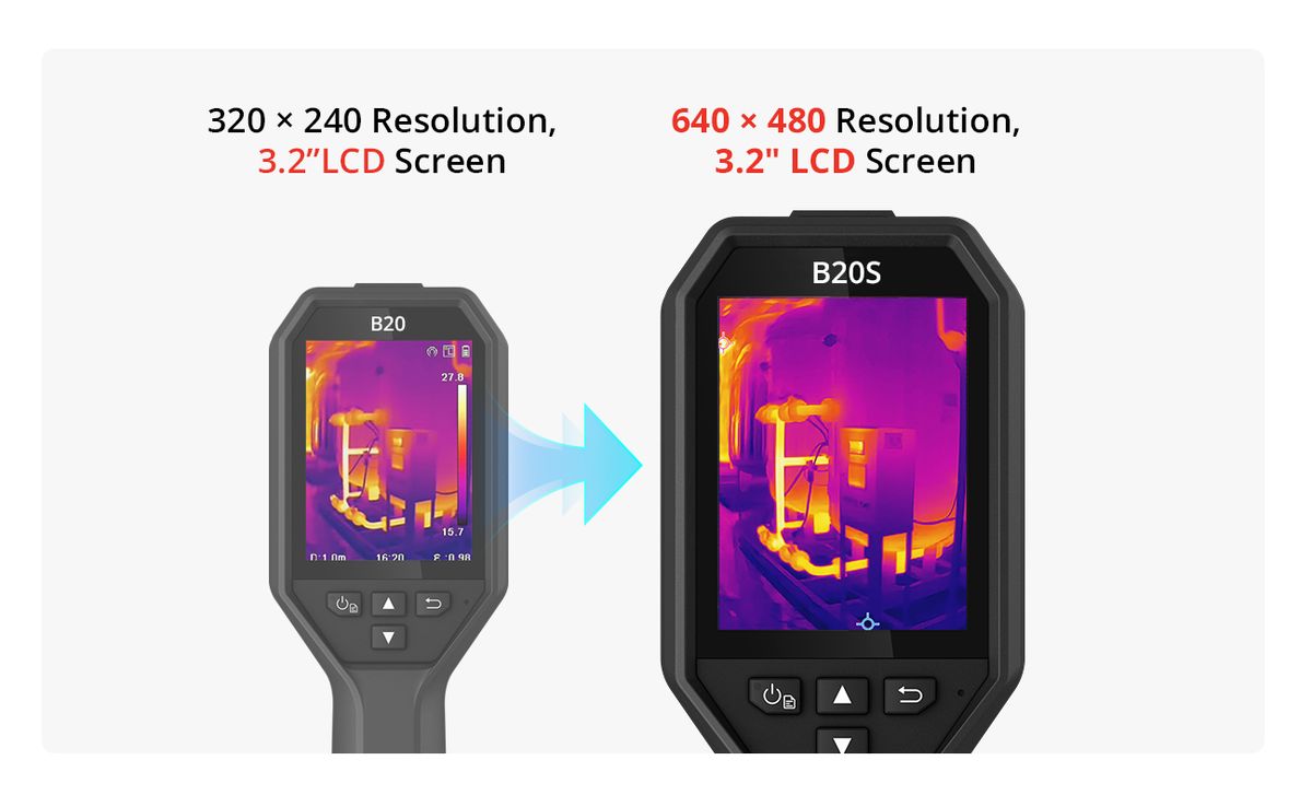 Experience the New and Improved Display – The B20S features a high-resolution display of 640×480. With the SuperIR , you can enjoy real-time high-definition previews, revealing more details and enhancing your overall experience.