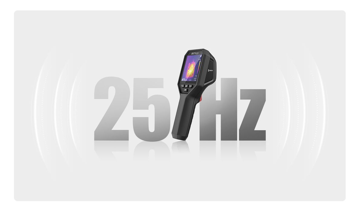 Fast Image Frequency – Whether in electrical scenarios, residential inspections, or equipment maintenance, the thermal imaging camera B21LS provides reliable performance. Its 25 Hz delivers smooth video and measurements while panning across scenes or viewing moving targets.