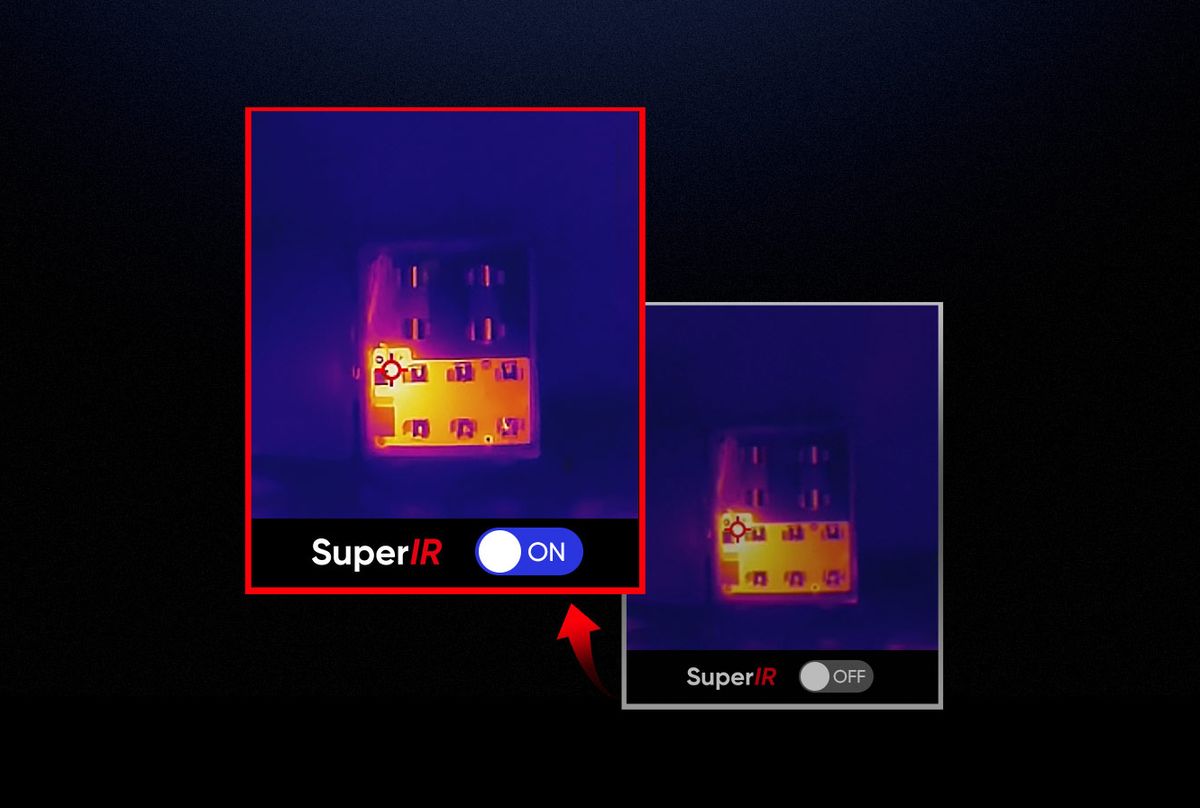 Enhanced Thermal Clarity with SuperIR* – Powered by HIKMICRO SuperIR image enhancement technology, it upscales the resolution of captured thermal images to 320 x 240 (76,800 Pixels). (*SuperIR enables captured thermal images only)