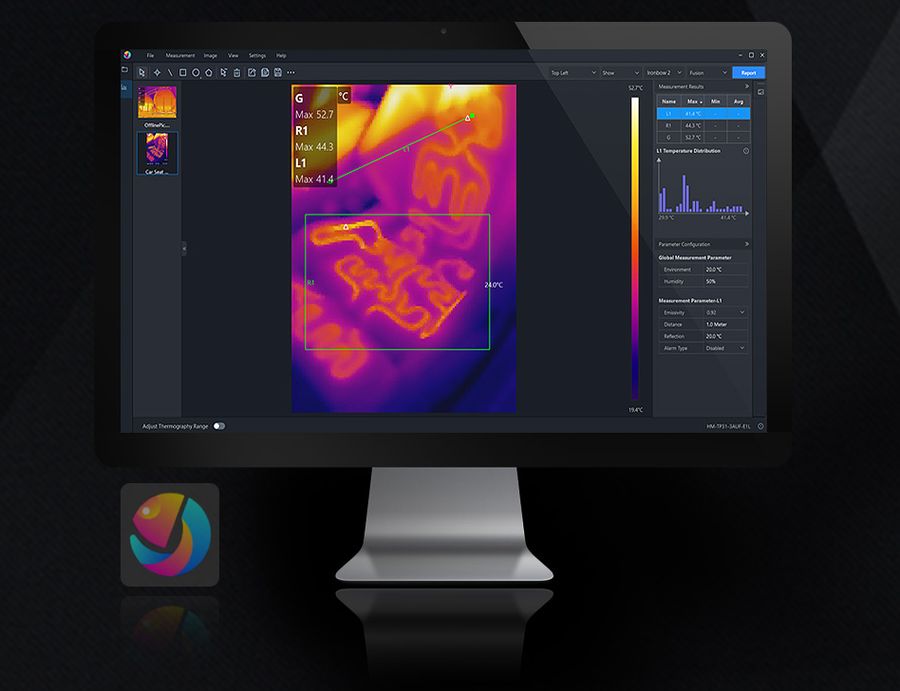 Temperature Analysis Software – HIKMICRO Analyzer is a free software offering flexible ways, including points, lines, rectangles, circles, polygons to analyze thermographic information of captured pictures, and generate reports.
