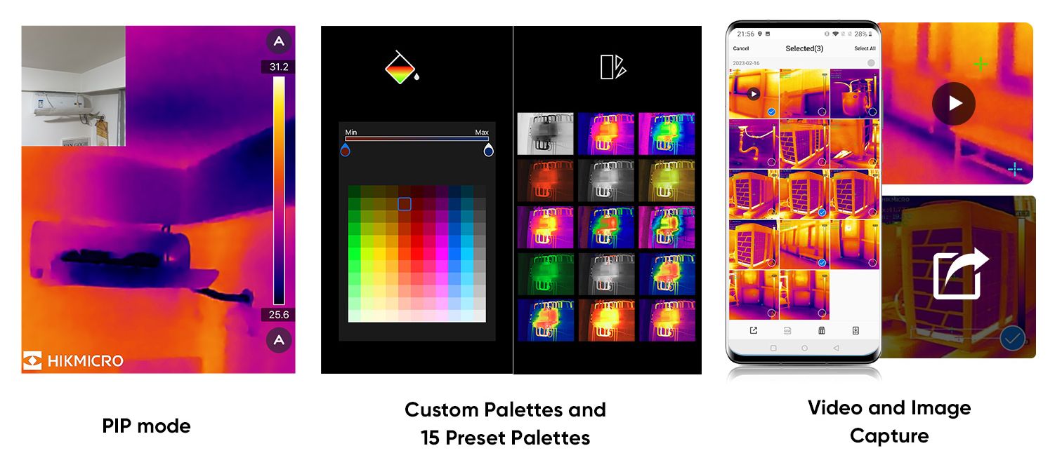 Image & Temperature Measurement – HIKMICRO Mini2 V2 with PIP mode, Custom Palettes and 15 Preset Palettes, Video and Image Capture make it easier to work