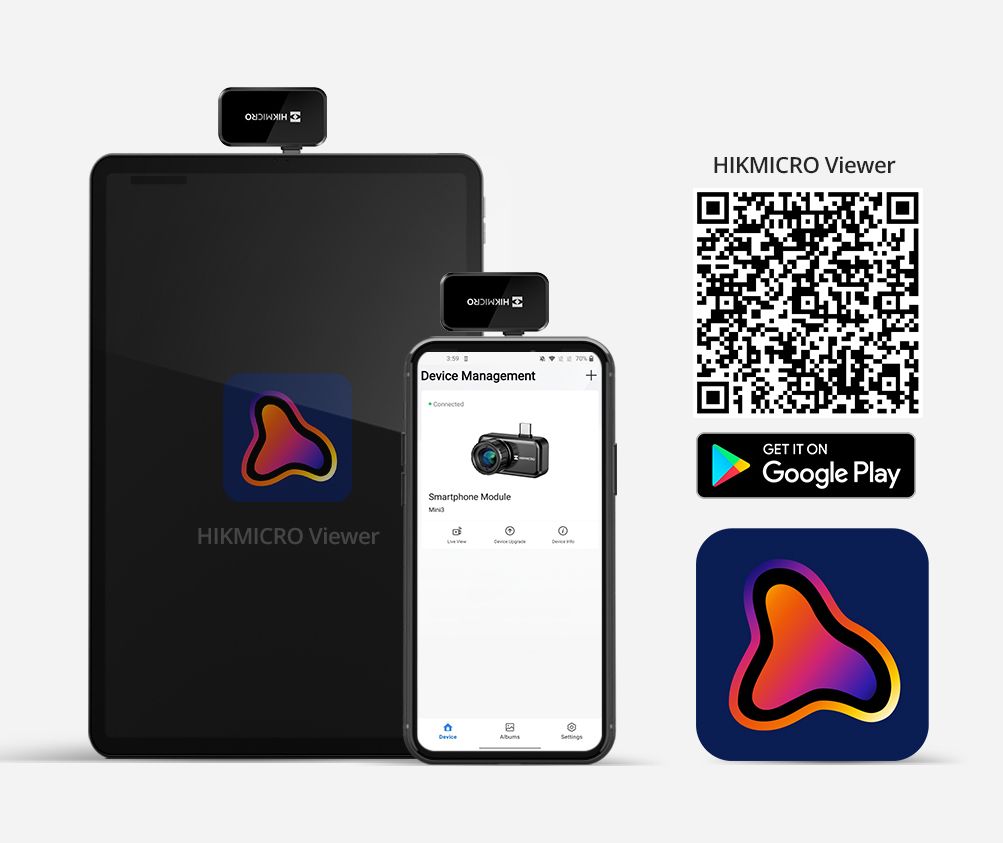 Mini Series APP for smartphone or tablet – Mini3 is compatible with our free HIKMICRO Viewer for smartphones providing a user-friendly user interface and the link to operating the camera.