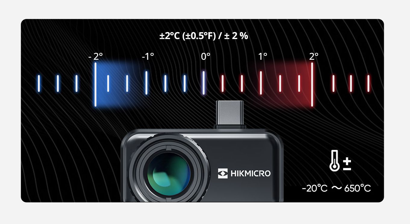 Accurate Temperature Measurements – Mini3 accurately measures temperatures from -20°C (-4°F) to 650°C (1202°F), with a temperature accuracy up to ±2°C (±0.5°F) / ± 2%.