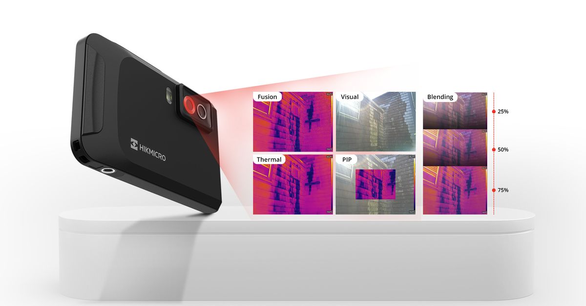 Dual Thermal-Visible Camera – The HIKMICRO Pocket2 features both an IR camera and a visible camera, enabling you to switch between multiple image modes (Thermal, Visual, PIP, Fusion, or Blending) and save visual and thermal images simultaneously with just one click, providing clear reference images. This ensures an efficient workflow and fast inspection report.