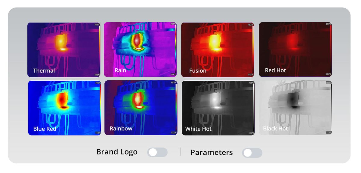 | Color Palettes | White Hot, Black Hot, Rainbow, Ironbow, Red Hot, Fusion, Rain, Blue Red |