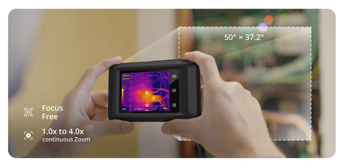 Wide FOV – The HIKMICRO Pocket2 offers a wide 50° x 37.2° field of view (FOV) and 1.0x to 4.0x continuous digital zoom, allowing you to capture larger areas with more details effortlessly without adjusting the focal length. It’s a convenient grab-and-go device for easy and hassle-free imaging.