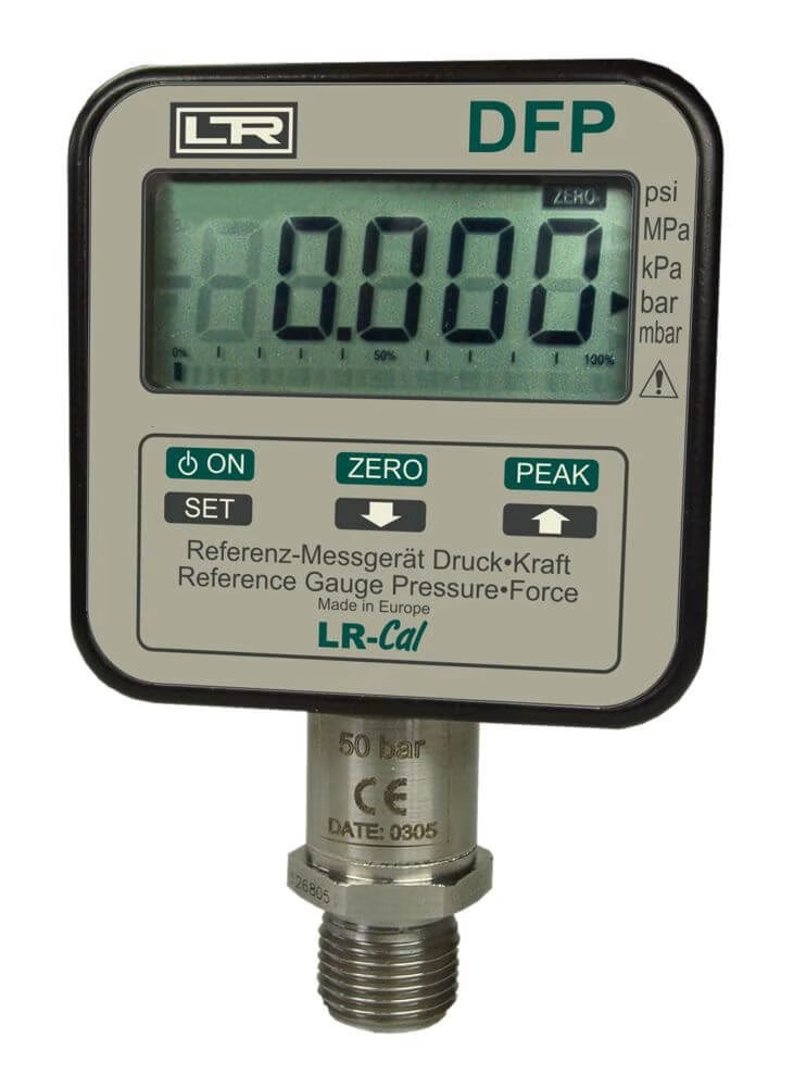 The LR-Cal DFP digital reference gauge features outstanding long-term stability, a 16-bit A/D converter and modern microprocessor control. It is ideal for reference pressure measurements, as well as testing and calibration tasks, especially also for force gauges and pressure gauges with scaling in one weight unit.