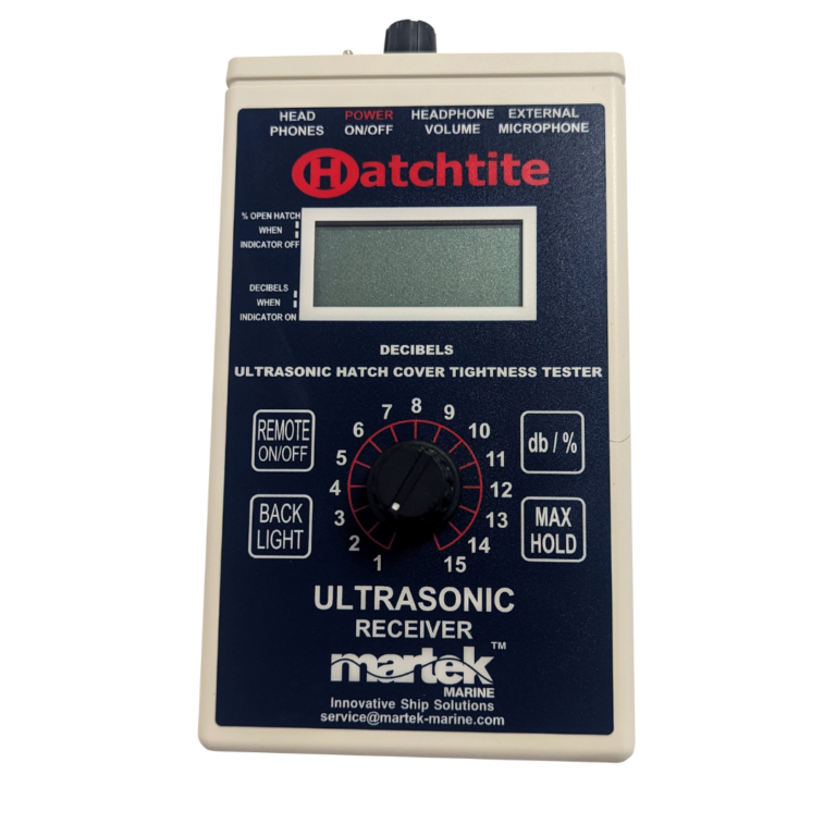 Hatchtite uses a transmitter placed inside the cargo hold (empty or with cargo) emitting ultrasound waves. With the hatch covers closed, a hand held telescopic microphone is used at the hatch cover interfaces. The system is fully compliant with IACS Unified Requirement U.R.Z17 and approved by insurers.