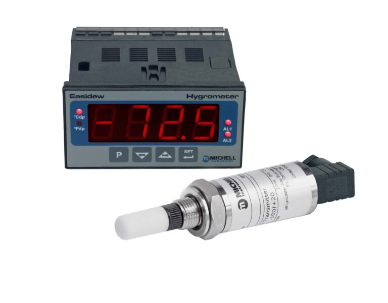 Easy to install and maintain, the Easidew Online Hygrometer measures and displays dew point and moisture content for use in a wide range of moisture applications. The Easidew Online display provides analog, digital, and dual relay alarm outputs. This hygrometer is compatible with the entire Easidew Transmitter range to provide local readings as well as re-transmitted control signal.