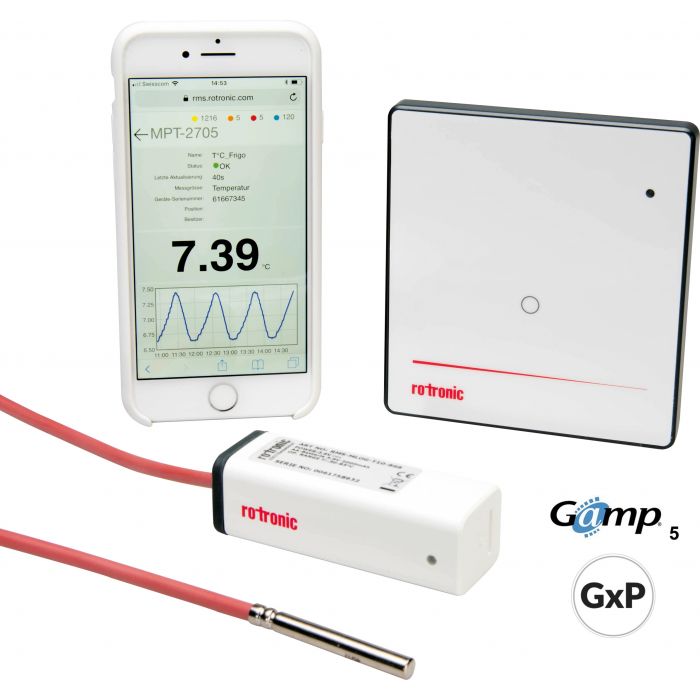 Pharmacy laws and control of therapeutic products require controlled storage of medicines. For example, insulin and some antibiotic syrups need to be stored in special refrigerators. The temperature in these refrigerators must either lie constantly at -20 °C or in a range of 2 °C to 8 °C. Storage must also be traceable. A temperature range of 15 °C to 25 °C applies to less sensitive medicines. For monitoring of such refrigerators, we offer a special RMS Pharmacy Starter Kit comprising: