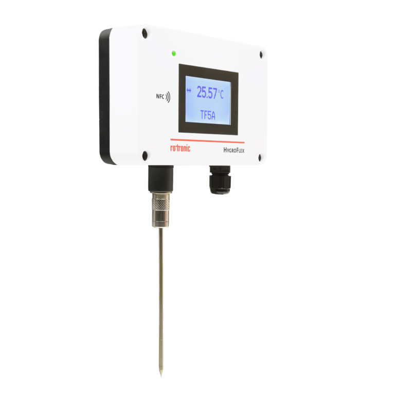 The advanced HygroFlex5 temperature series is compatible with all Rotronic and third-party PT100 probes featuring a binder 4-pole connector, providing a broad range of temperature options and high accuracy. The TF5A temperature transmitters are available in wall-mounted versions, with or without a display, and offer a wide range of adjustable temperature scaling via NFC.