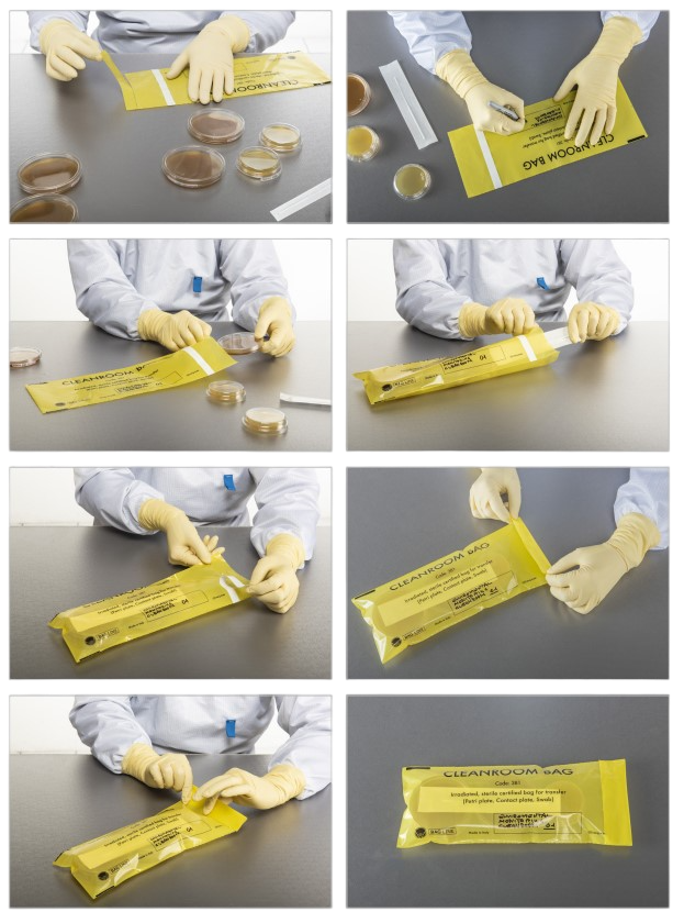 Sterile bags, ideally suitable for safe storage and transportation of Petri dishes, Contact plates, Swabs, or other objects outside the cleanroom. Ensure complete sterility traceability and compliance with GMP/GLP requirements.