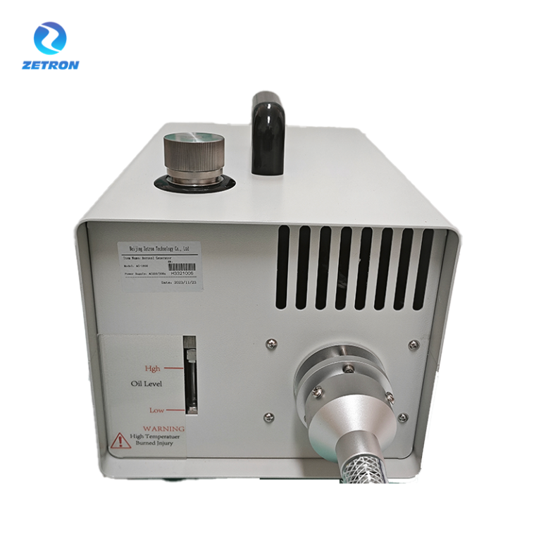 Aerosol generator is a device to generate smoke, DOP solvent (or PAO solvent) poured into the generator container, under certain pressure heating conditions can produce aerosol smoke, the aerosol smoke will be sent to the upwind side of the high-efficiency filter (DOP liquid heating, the formation of DOP vapor, the vapor condensed into tiny droplets under specific conditions, remove the too large and too small droplets, leaving only 0.3 μm (about particles, mist DOP into the air duct).